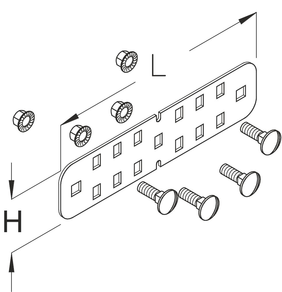 Łącznik boczny korytek kablowych. Łącznik posiada w komplecie śruby i nakrętki. Zastosowanie łącznika zapewnia korytkom kablowym utrzymanie ciągłości potencjału zgodnie z DIN EN 61537. Zgodnie z DIN 4102-12 element może być stosowane do wykonania tras systemu utrzymania funkcji E90 w przypadku pożaru.