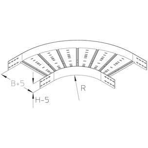 Łuk samonośnego korytka kablowego, wysokość=100 mm.