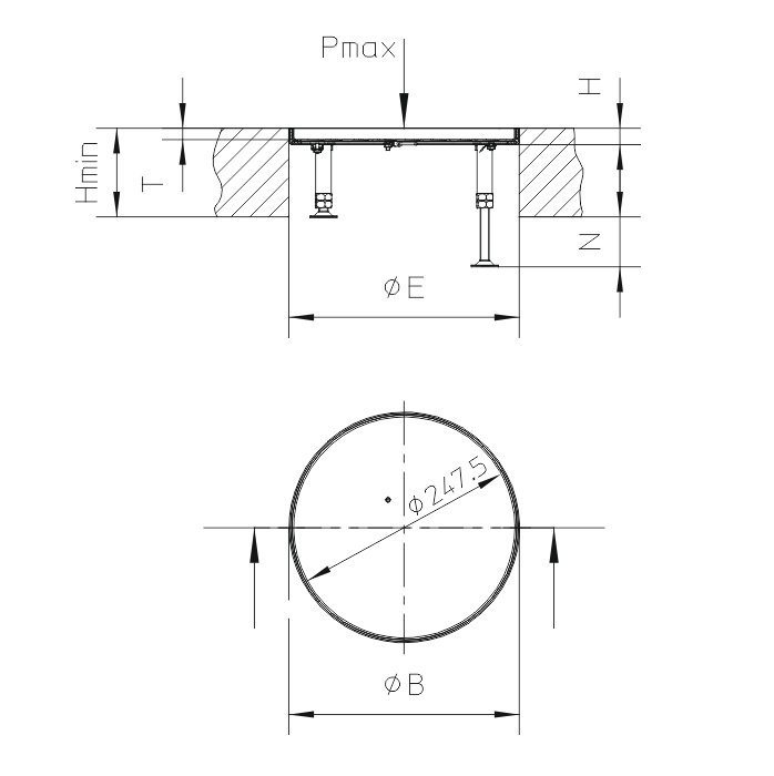 Kaseta ślepa, okrągła, poziomowalna.