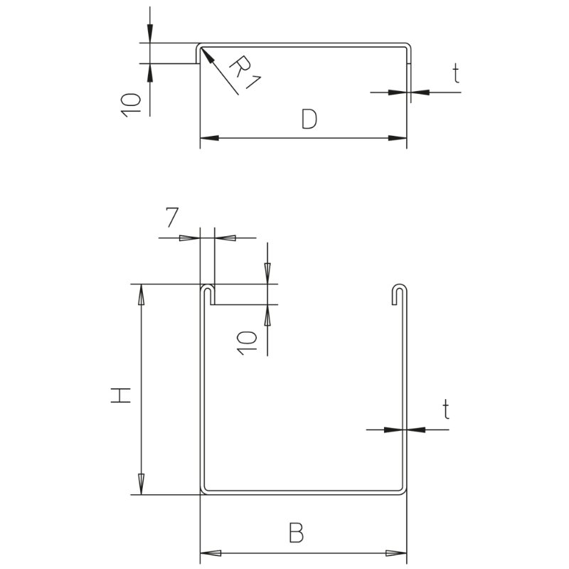 Mały kanał podłogowy bez perforacji, z pokrywą, wykonany ze stali ocynkowanej metodą Sendzimira zgodnie z DIN EN 10346, przeznaczony do prowadzenia pojedynczych kabli. Montaż do kanału głównego poprzez redukcję BKRKK.